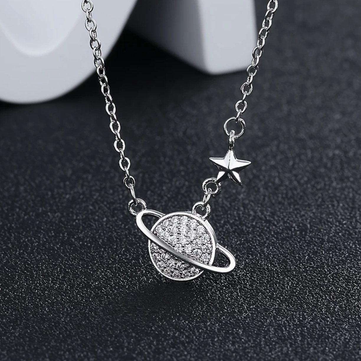 5x Zilverkleurige Planeet Ketting met Zirkoon Ring Je bespaart 8%